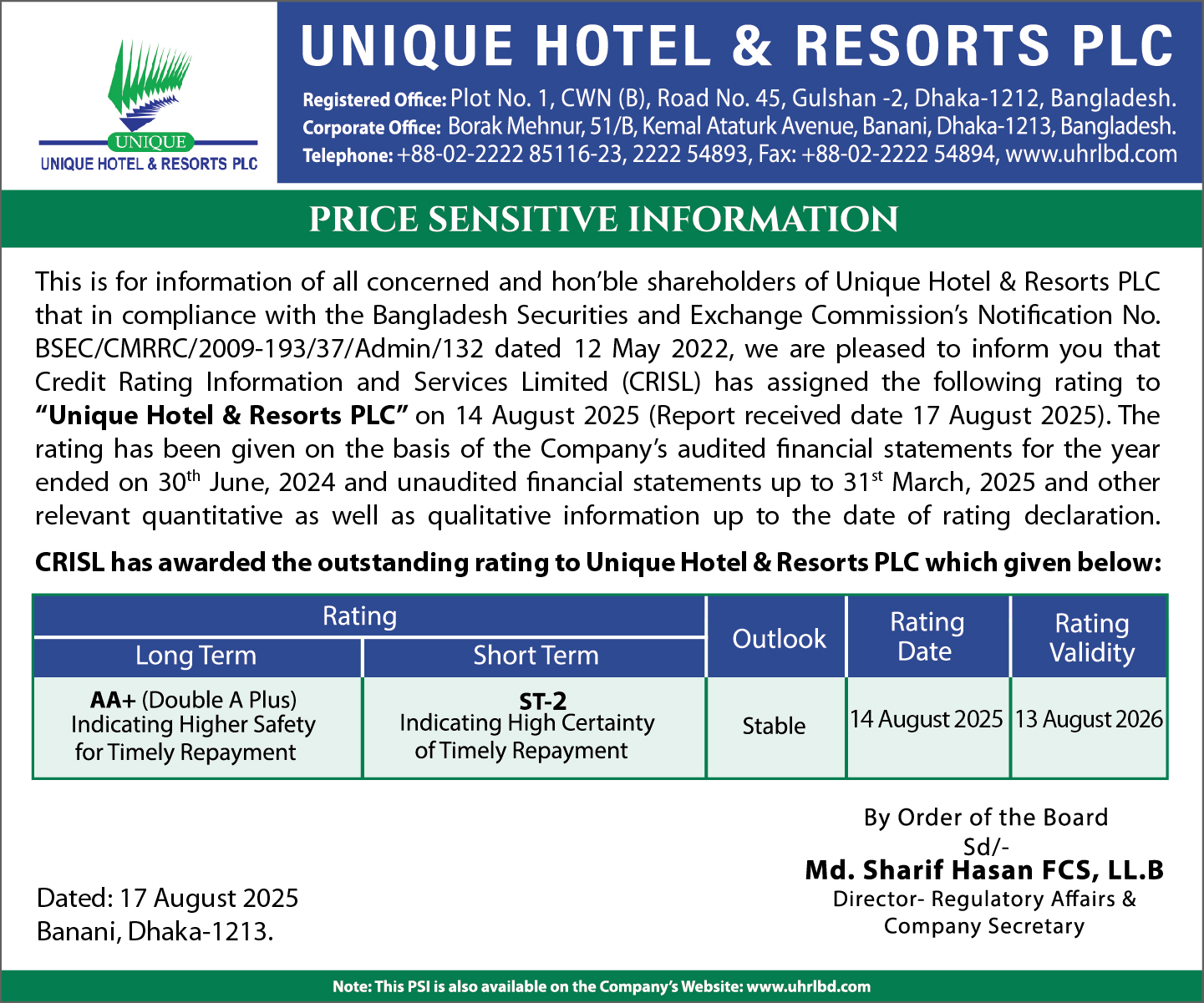 Price Sensitive Details